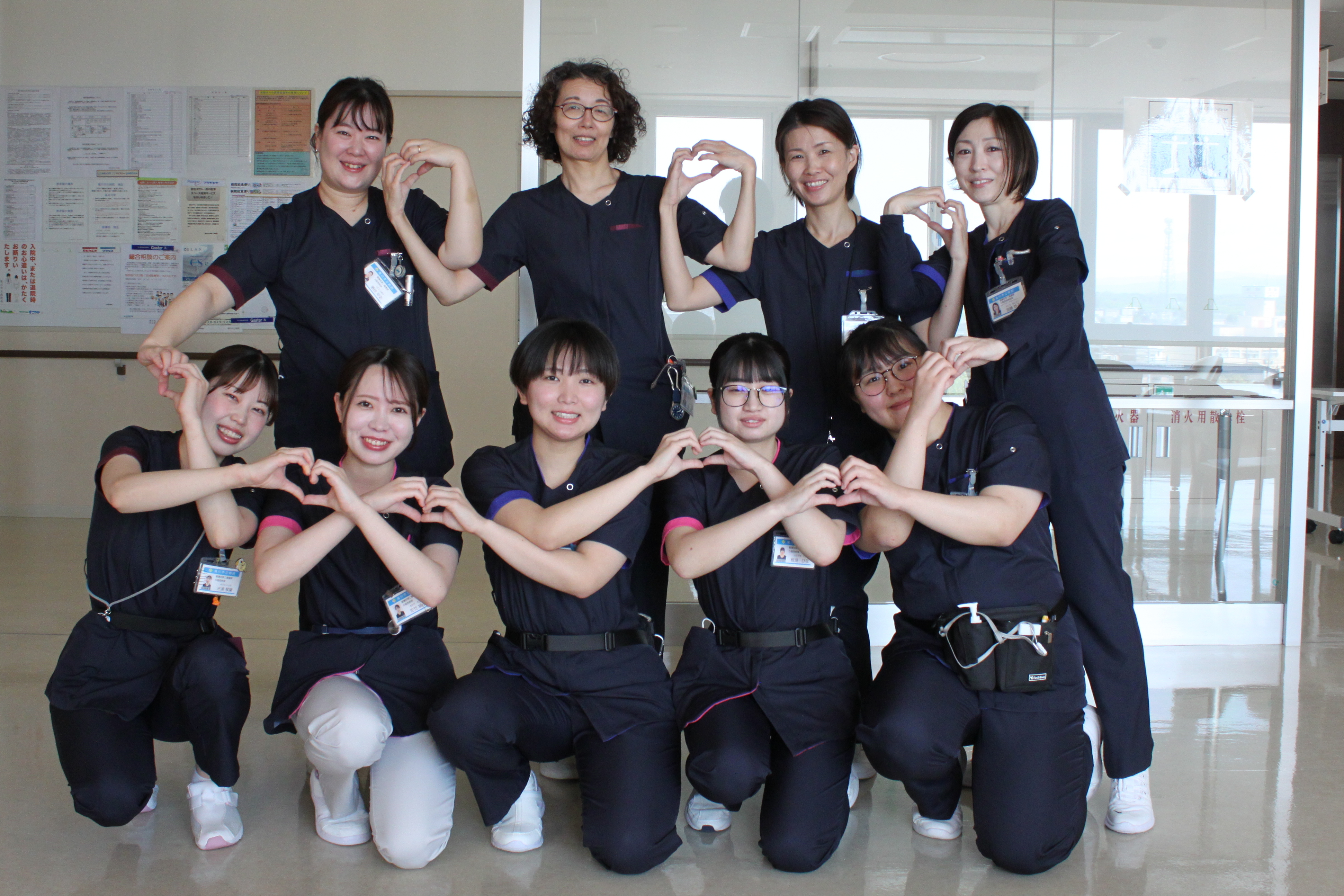 当病棟は、内科・小児科混合の一般病棟で、0歳から90歳代(時には100歳以上)まで幅広い年齢層の患者様が入院されています。 入院患者様の多くはご高齢で、中には認知症により身体ケアが必要な患者様もおり、ADL(日常生活動作)の維持やQOL(人間性や主体性、生活の質)の向上に目を向けた援助を行っています。 医師、看護師、理学療法士、薬剤師、管理栄養士などが連携し、患者様に関する情報を共有しながら患者様やご家族が安心して治療が受けられるよう多方面から介入しています。 また、病状が急性期から慢性期へ移行され、退院支援が必要な患者様も多く、早い段階から地域医療連携室と情報共有をし、ご自宅への退院や療養型病院などへの転院に向けて援助を行っています。 患者様やご家族のご要望を活かし、個別性のある看護を行えるようスタッフ一人ひとりがケアの質向上を目指しています。 |