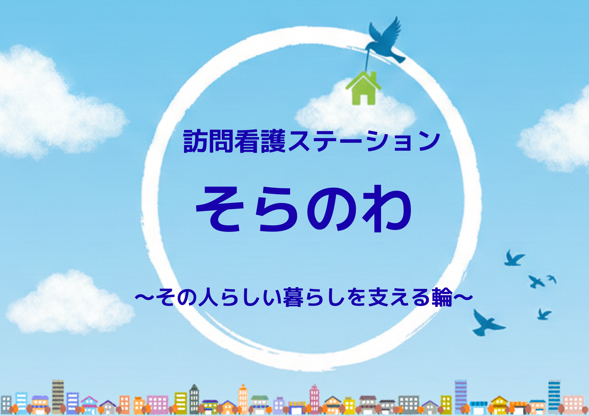 「そらのわ」は、地域のつながりを大切にしながら、利用者さまがご自宅で“その人らしく”過ごせるよう支える訪問看護ステーションです。私たちは、利用者さま、ご家族、地域の皆さまと一緒に、安心の輪、支え合いの輪を広げていきたいと考えています。